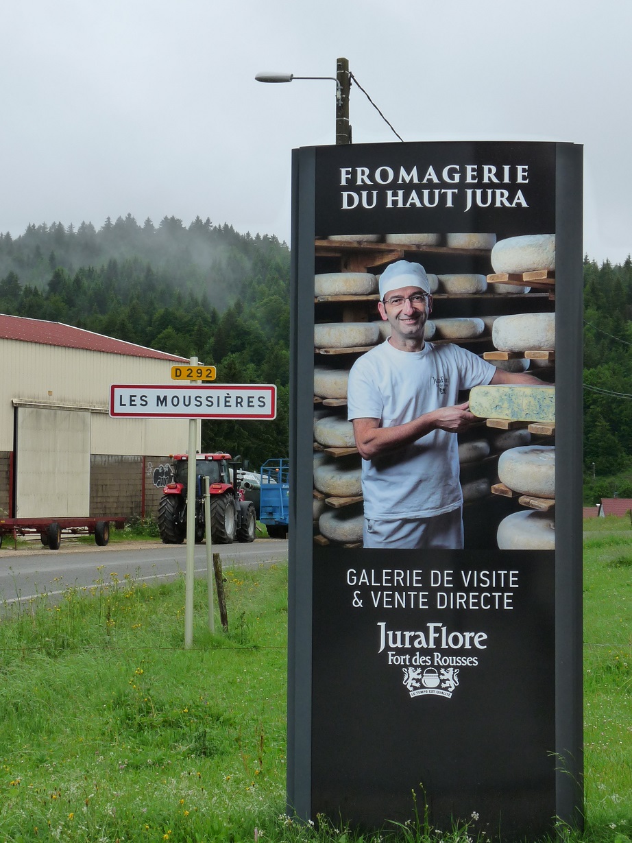 Mercredi matin, le dernier jour : Les Moussières Fromagerie du Haut Jura. On chemine dans un couloir bordé de vitres permettant d'observer les employés traitant le lait du matin. Une scénographie, complétée par un film, détaille les méthodes de fabrication des trois fromages phares de cette fruitière : le Comté, le Morbier, le Bleu de Gex. A la suite de cette visite, chacun a pu faire ses emplettes.