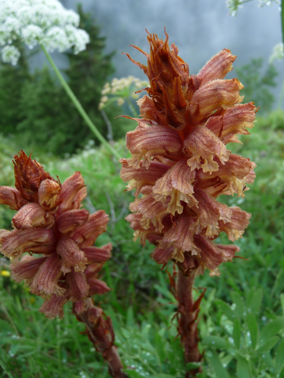 Le reste de la matinée nous avons pu cheminer sur les Grès de Septmoncel. De belles étendues fleuries, avec sur les crêtes de grandes étendues de Laserpitium siler - Laser siler (Apiacées). Il y avait aussi un grand nombre d'orobanches inféodées à cette plante Orobanche laserpitii-sileris - Orobanche du laser (Orobanchacées). On notera quelques observation particulières d'orchidées et de pyroles.