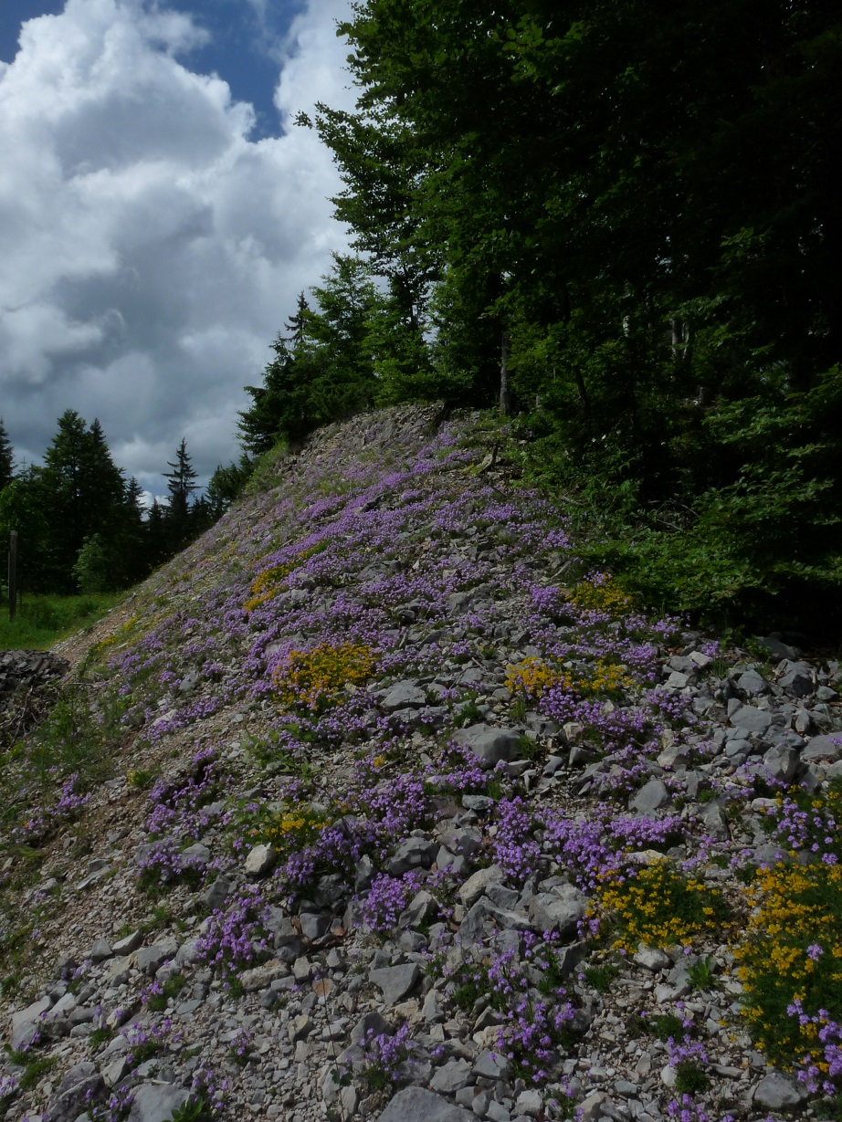 Première étape sur la route de Lamoura : le plateau de la Doye à Dortan près d'Oyonnax. Le site est constitué d'un plateau calcaire et de coteaux marneux. Ils sont couverts de prairies de fauche ou de pâture ainsi que de friches herbeuses ou arbustives.